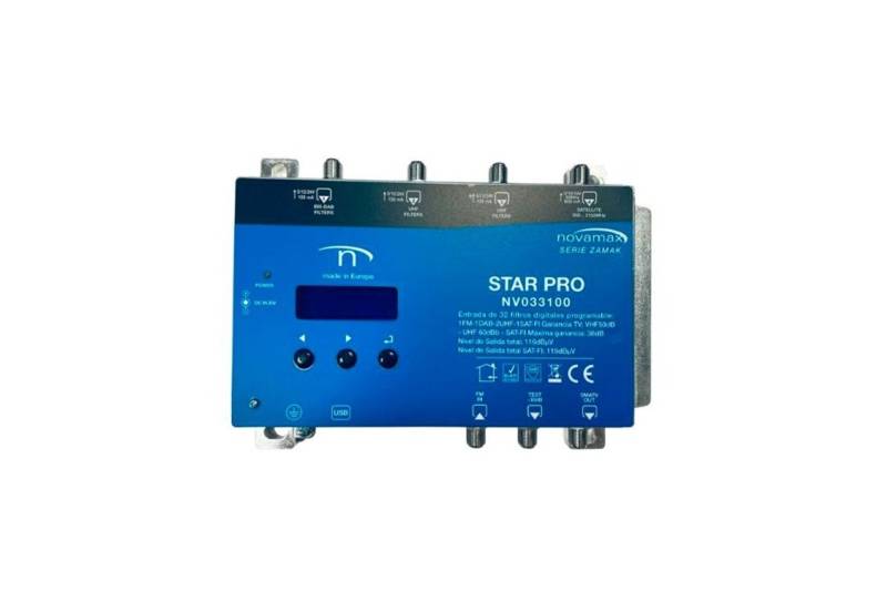 Central programable 32 filtros, 4 Entradas 1FM, 1 BIII/DAB, 2 UHF x1SAT G 50dB VHF - 60dB UHF. Salida 93-113db.