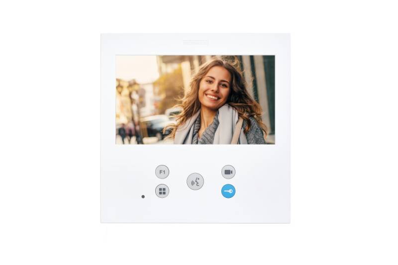 VEO-XL incluye una pantalla panorámica a color de 7" (16:9). Su diseño balanceado de líneas puras es distintivo, moderno y minimalista. VEO-XL se integra en el ambiente. Cuando se recibe una llamada, la imagen aparece automáticamente. Cuando se pulsa el botón conversación, comienza la conversación con el visitante. La imagen desaparece automáticamente tras 90 segundos o cuando se pulsa de nuevo el botón. Para abrir la puerta pulsar el botón llave.
