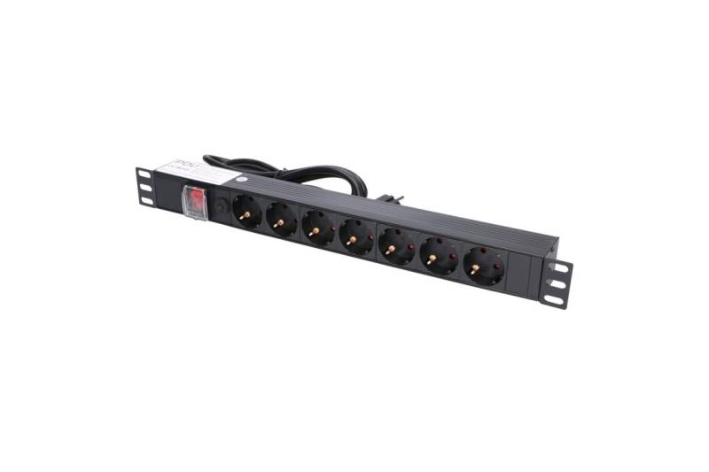Regleta horizontal de Extralink con 7 enchufes y un interruptor de dos polos para un rápido encendido y apagado. Es de 1U de altura y tiene un espacio de montaje ideal para todos los armarios de 19", tanto colgando como de pie.