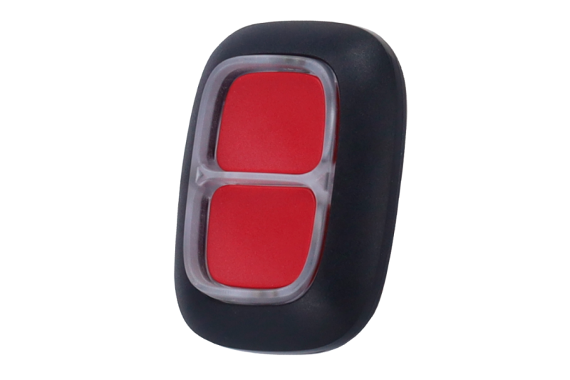 Para provocar una alarma, debe pulsar simultáneamente ambos botones. Son rígidos y están separados por un divisor de plástico. Esto elimina las falsas alarmas al llevar DoubleButton en un bolsillo o en una cartera.